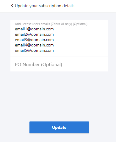 - Navigate to the field for adding user emails who will be accessing Zebra AI (image below).
