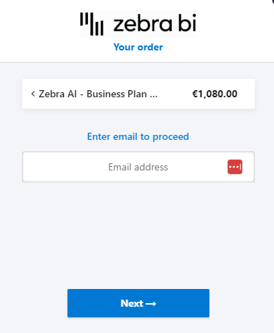- Use the email address you used to purchase the Zebra AI license to log in. (see image)